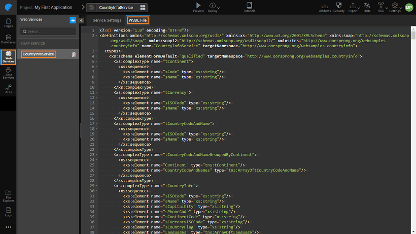 4. You can view the WSDL code from the WSDL File tab.