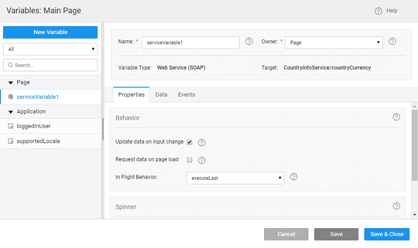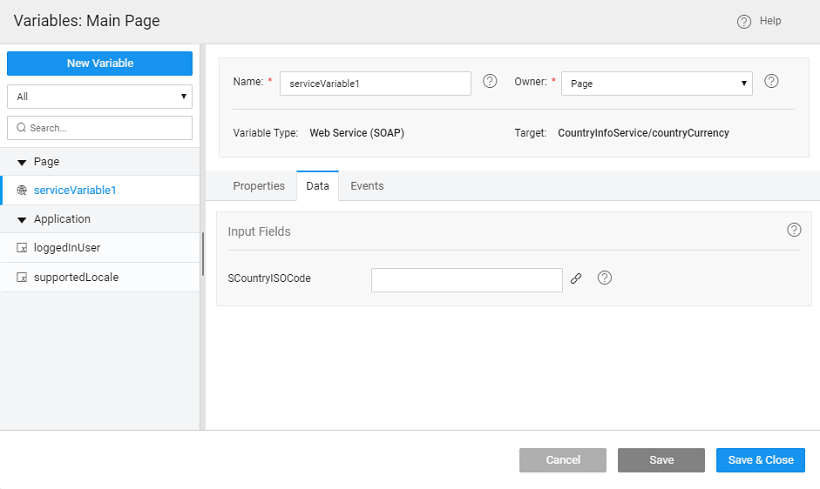 To use the Service data within the app, you need to create Variable.