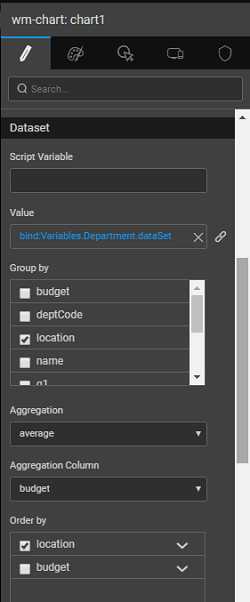 When dealing with charts bound to live variables, you can add additional functionality to these charts. You can order the data, group the data and show the aggregate functions in your chart. The aggregation functions available are average, count, minimum, maximum and sum.