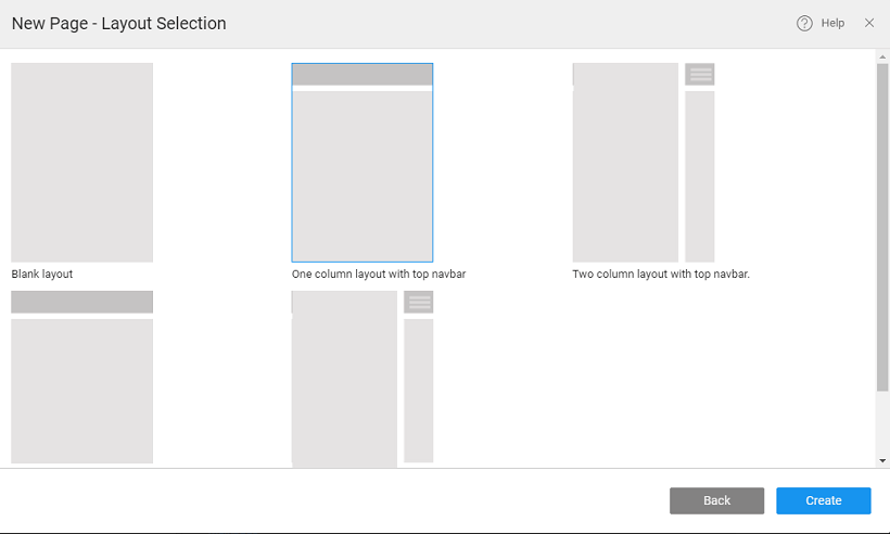 - Create a page using blank template and layout as ‘One column layout with top navbar’