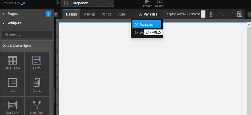 2. Open the Variables dialog from the Variables menu and using New Variable create a Model variable (Know more about variables).
