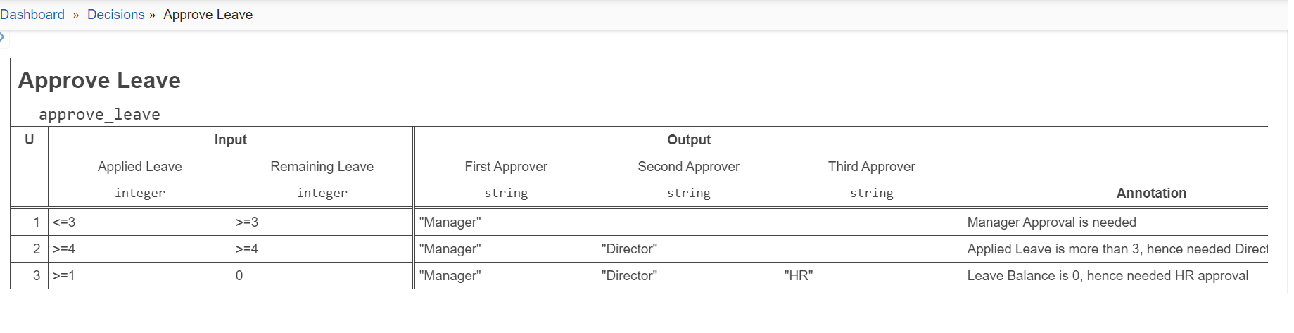 Create DMN(Decision Management) table for setting up rules Below is the decision table created using the Camunda DMN.