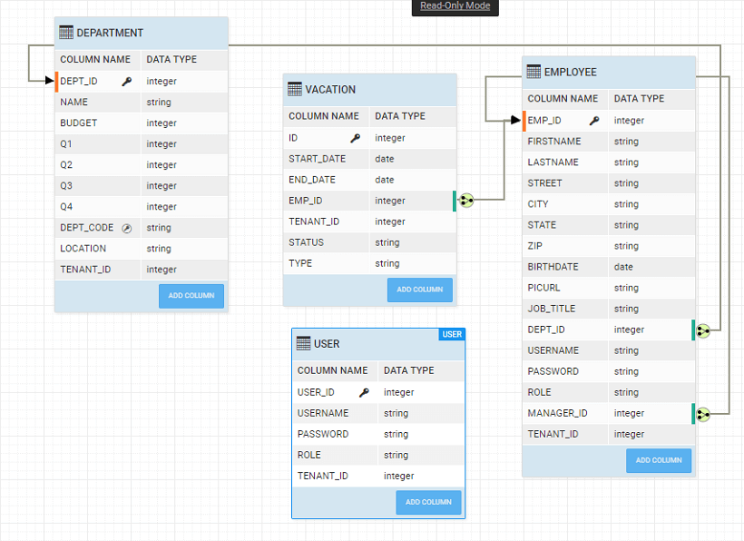 1. We are using the Department DB available after importing the sample DB which ships with the product.