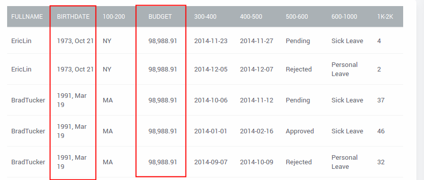 If the column names has any special chars, then the special characters will be removed for the column name by default. If one wants to display the column name as it is, then write the below code in onBeforedatarender event.