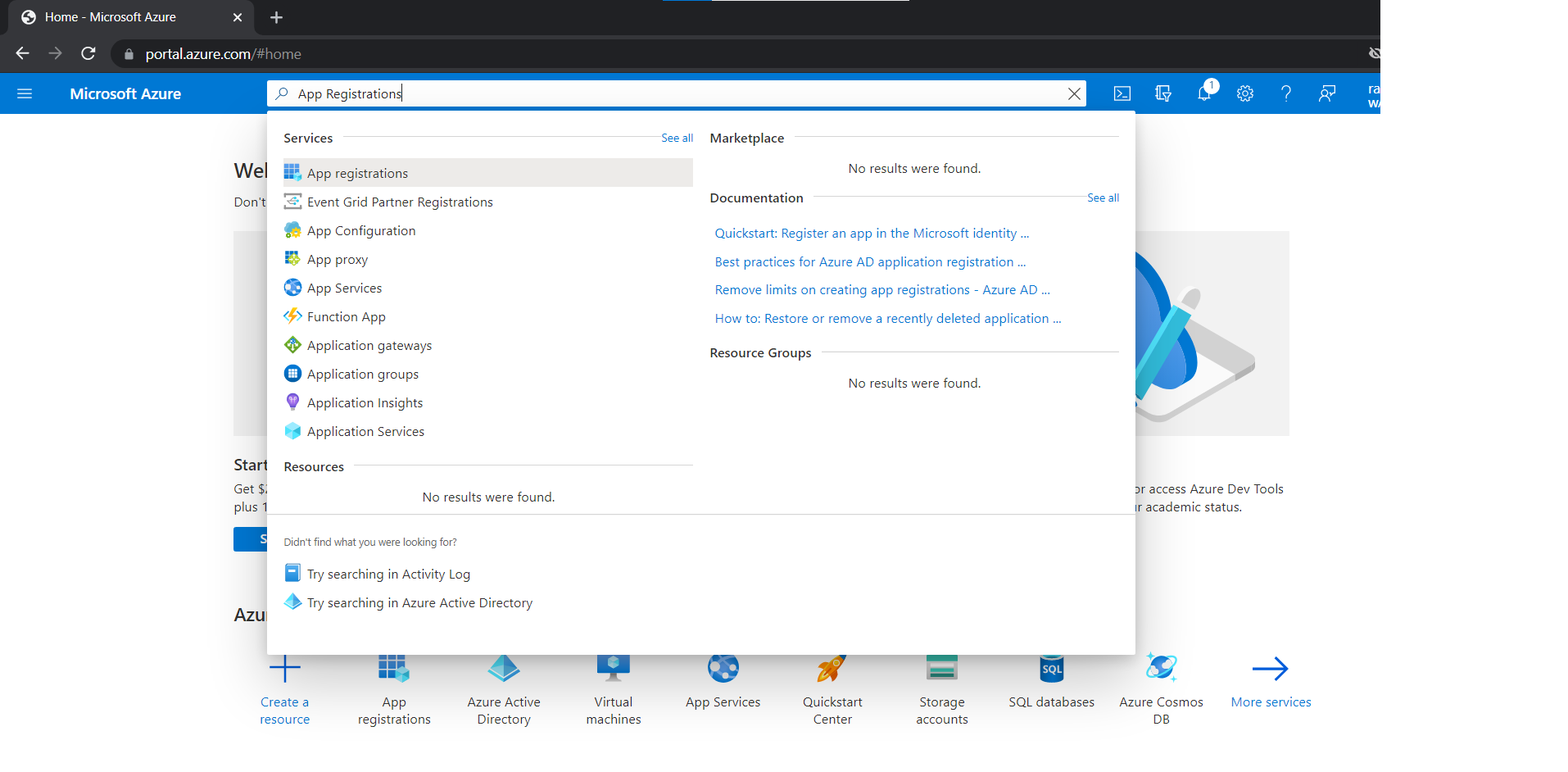 1. Log on to https://portal.azure.com and enter your credentials. It redirects to the Azure Portal Home page.