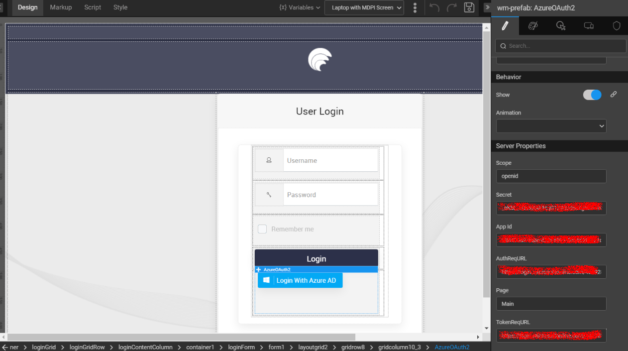 1. Download the prefab from Git repository Azure OAuth Prefab and import it as a prefab on your WaveMaker Studio.