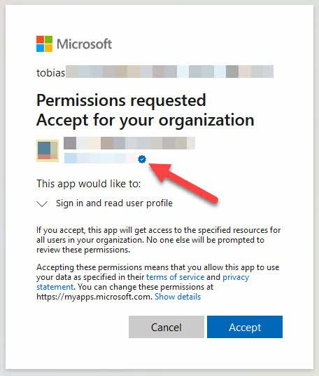 1. Once consent is accepted, the user will be logged in and redirected to the application.