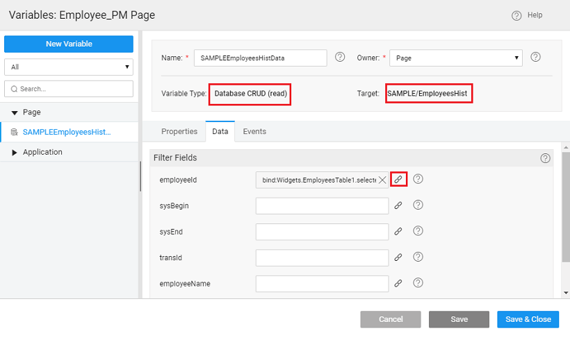 • Create a new Database CRUD Variable for Employee History table.